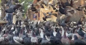 ยิงจับยิ่งขาย แก๊งขายอาหารนกพิราบ กลับมาแล้ว แถมโปรยอาหารล่อนกรวมฝูงนับพันๆ ตัว